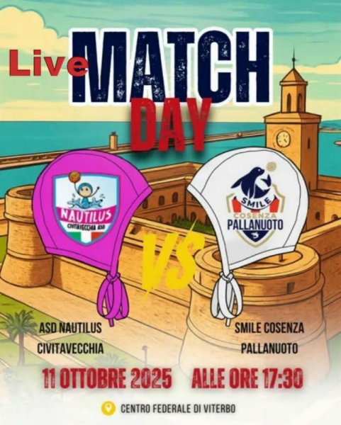 La partita si disputerà presso la piscina comunale di Civitavecchia, con fischio d’inizio previsto nel pomeriggio. La Smile Cosenza Pallanuoto invita tutti i sostenitori a seguire e supportare la squadra anche da lontano, attraverso i canali ufficiali.