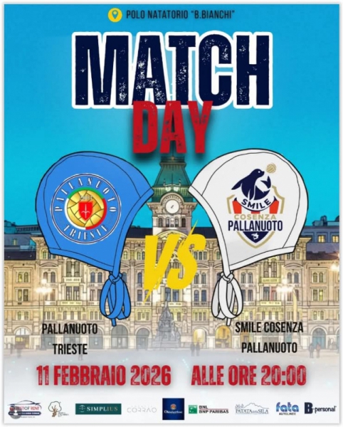 Riparte la corsa della Smile Cosenza Pallanuoto. Dopo la lunga pausa dedicata agli Europei, il campionato di Serie A1 femminile torna in vasca con la prima giornata del girone di ritorno. Il sette cosentino sarà impegnato mercoledì 11 febbraio alle ore 20.00 nella difficile trasferta di Trieste, dove affronterà la formazione friulana in un match che si preannuncia intenso e importante per il prosieguo della stagione.