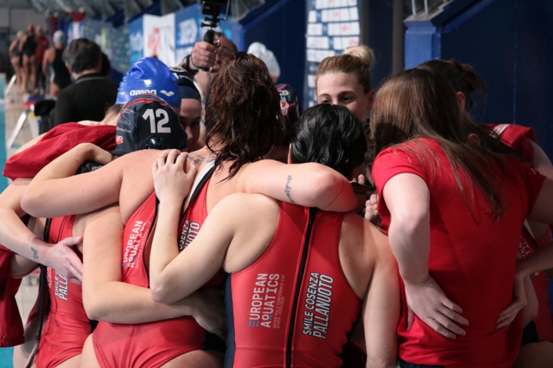 Nell’ultima gara, decisiva per l’accesso alla Final Eight, la Smile Cosenza ha superato l’AC Paok con un convincente 10-7 (2-3, 1-2, 6-0, 1-1). La partita ha cambiato volto nel terzo tempo, quando Morrone e compagne hanno messo in acqua una prestazione travolgente, firmando un parziale di 6-0 che ha ribaltato completamente il match.